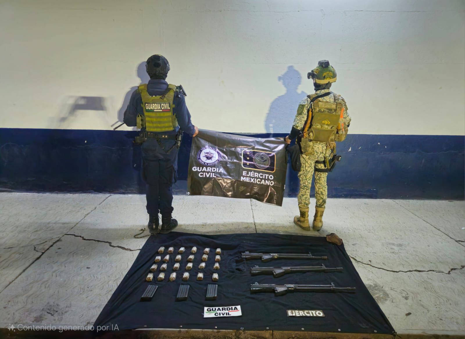 Ahí mismo, localizaron y decomisaron 240 cartuchos útiles, tres cajones metálicos de mecanismo de disparo y tres cargadores, los cuales fueron puestos a disposición de la autoridad competente, junto con el vehículo mencionado.
