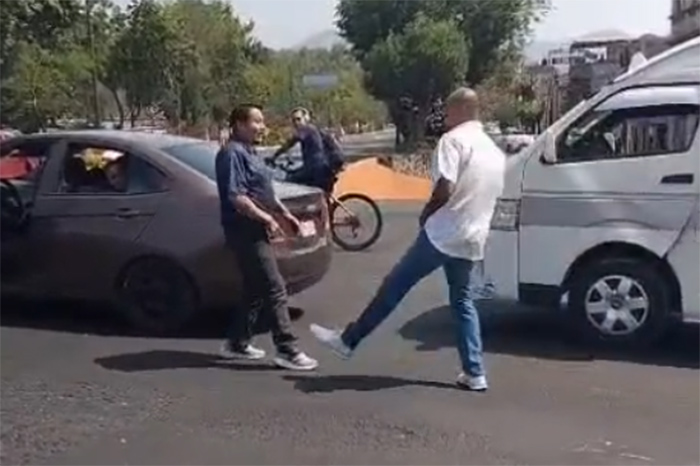 Morelia, Michoacán. Un nuevo episodio de violencia entre conductores en la vía pública fue grabado en un video que circula en redes sociales. El incidente ocurrió en el cruce de Avenida Solidaridad con Calzada Juárez, donde dos hombres protagonizaron una riña que comenzó por un reclamo y terminó con golpes.