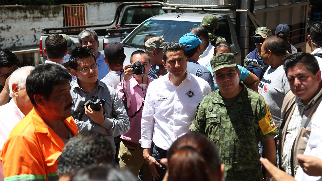 • Los secretarios de Gobierno y de Seguridad Pública, Carlos Herrera Tello e Israel Patrón Reyes, respectivamente, así como autoridades de los tres ordenes de gobierno recorrieron las zonas afectadas
