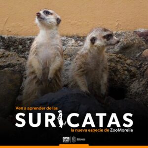 Morelia, Michoacán, 23 de diciembre del 2023.- ¡Biscosos, pero sabrosos!, una frase que para los nuevos inquilinos del Zoológico de Morelia es muy conocida, ya que las suricatas centran su dieta principalmente en los insectos. Estos diminutos mamíferos, de entre 25 y 35 centímetros de altura, te esperan desde hoy en nuestro recinto.