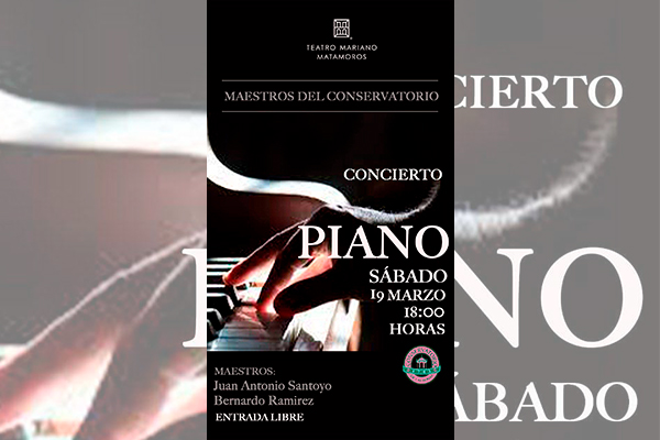 Sábado 19 de Marzo, concierto de Piano, a cargo de Juan Antonio Santoyo y Bernardo Ramírez.