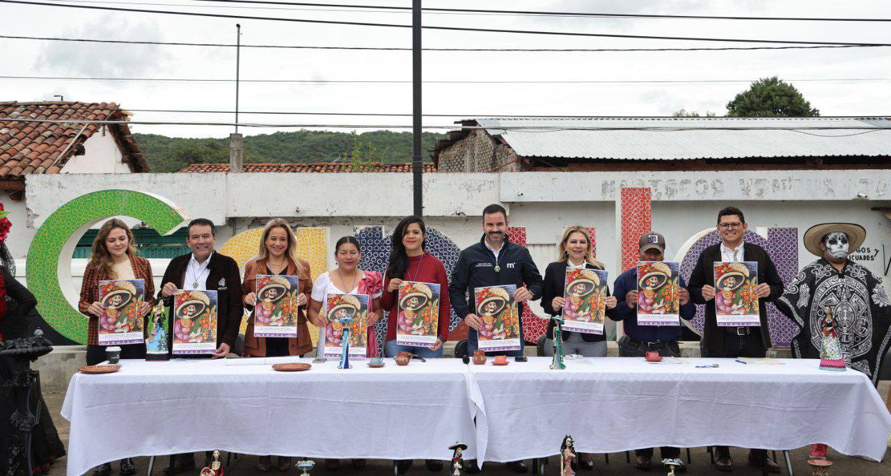 Morelia, Michoacán; 10 de octubre de 2023.- En la víspera de la tradicional celebración del Día de Muertos que se realiza en Morelia, autoridades del gobierno municipal, que encabeza el Presidente Alfonso Martínez Alcázar, anunciaron este martes, que la tenencia de Capula se encuentra lista para iniciar la XIII Feria Nacional, Artesanal y Cultural de la Catrina.
