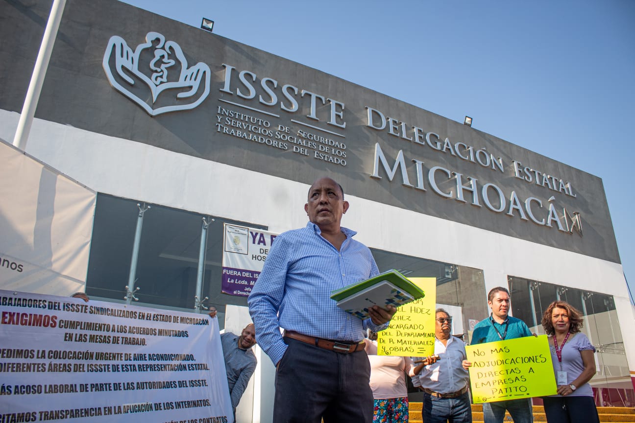 Además, empleados sindicalizados del Instituto de Seguridad y Servicios Sociales para los Trabajadores del Estado (ISSSTE) tomaron áreas de la delegación en Morelia el mismo día. Su objetivo es reclamar el cumplimiento de demandas, como la destitución de funcionarios que han incurrido en malas prácticas, el respeto a las condiciones generales de trabajo, la asignación de contratos para servicios como vigilancia, limpieza y fumigación de acuerdo con la norma, y la instalación de equipos de aire acondicionado en las oficinas.