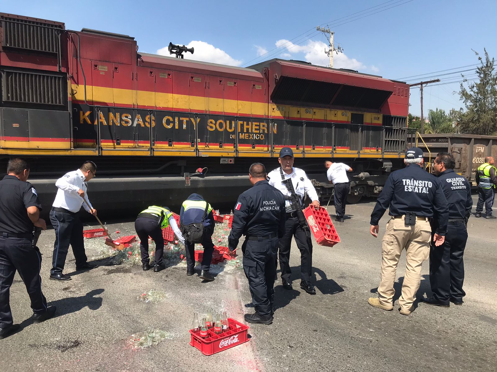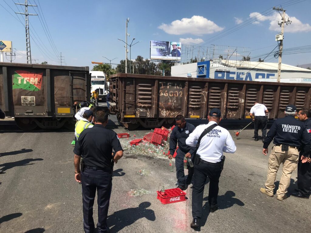 El hecho de tránsito ocurrió cerca de las 12:00 horas. Al momento se sabe que el tráiler marca Kenwort de color rojo, transitaba sobre el periférico y al llegar a las vías del tren, muy cerca del edificio de la Secretaría de Seguridad Pública (SSP), fue embestido por la locomotora.