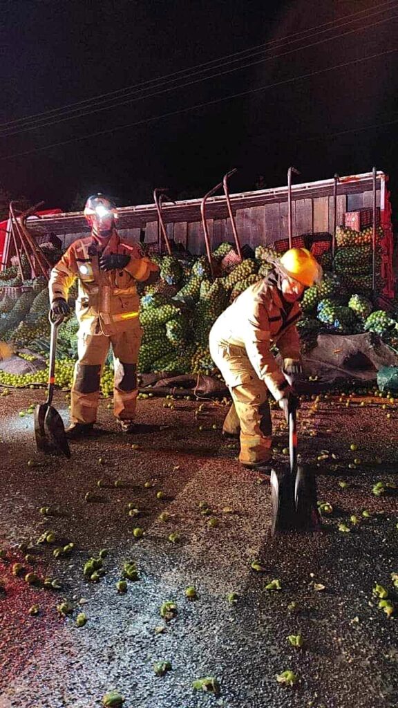 El incidente ocurrió en el kilómetro 18, cerca de la comunidad de El Reparo, en el municipio de Morelia, cuando ambos vehículos colisionaron y terminaron en la cuneta central de la vía, esparciendo el cargamento de limones en el área del siniestro.