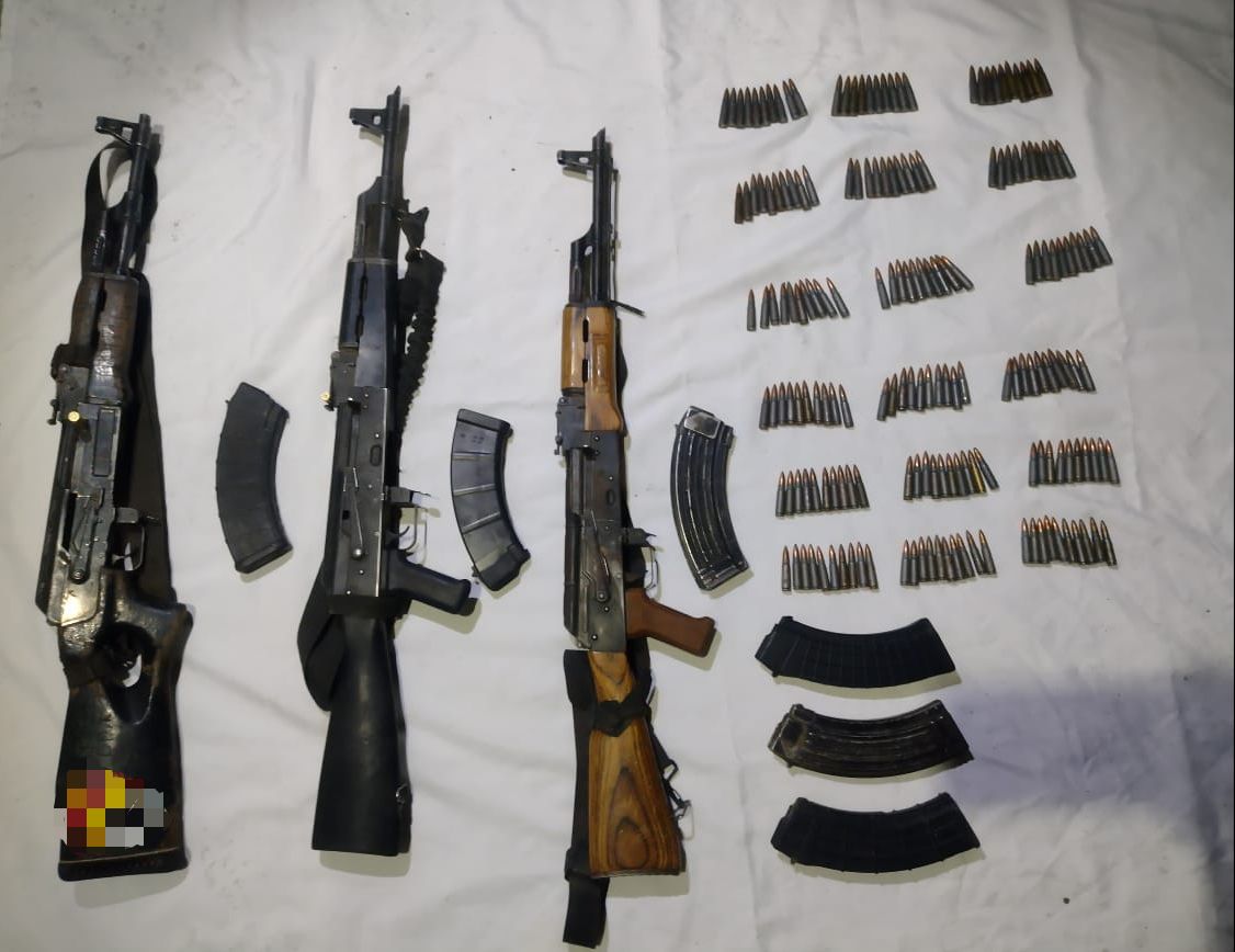 Por lo anterior, los elementos estatales y municipales les dieron alcance y les efectuaron una revisión oficial, en la cual les fueron decomisadas tres armas de uso exclusivo del Ejército Mexicano -calibres 7.62x39mm-, así como 180 municiones para las mismas y seis cargadores. Los indiciados junto a lo decomisado fueron puestos a disposición de la autoridad correspondiente, quien continuará con las indagatorias de Ley.