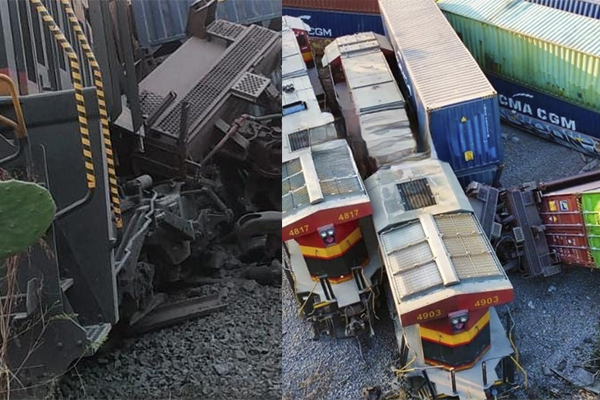 El tren se descarriló y tres vagones terminaron volcados, al momento no se reportan personas lesionadas.