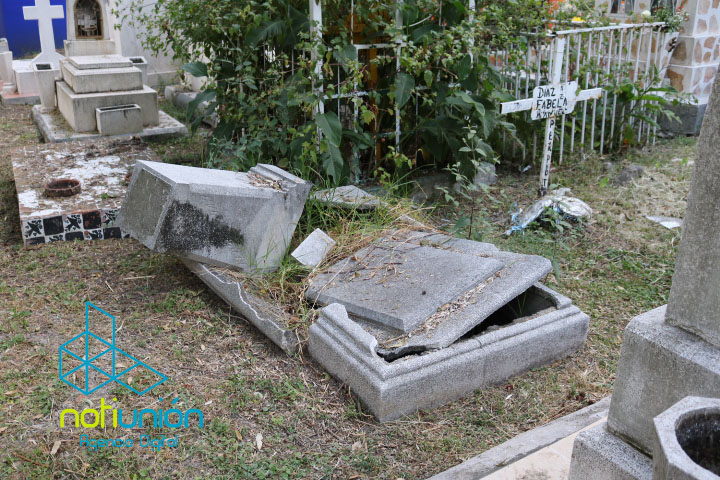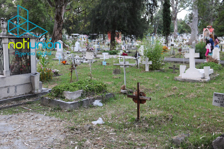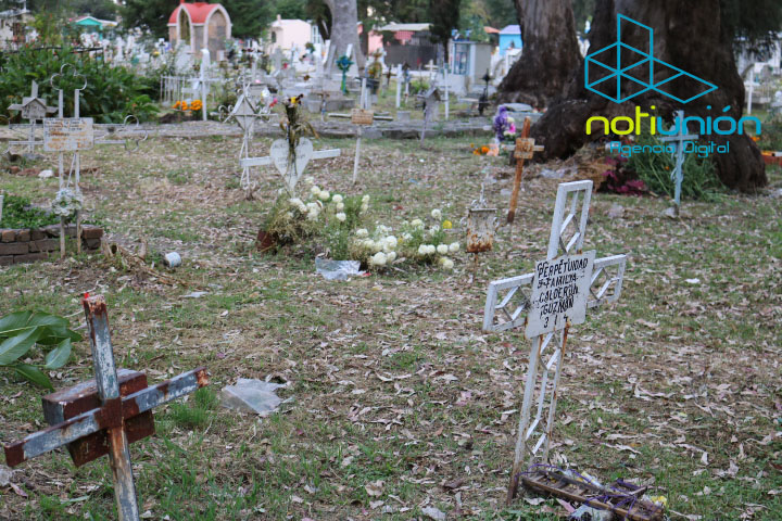 Las tumbas lucen vacías y descuidadas, en años anteriores los familiares acostumbraban acudir al panteón a dar mantenimiento al lugar donde descansan los restos de sus seres queridos. Desde el retoque de pintura hasta la decoración alusiva a la tradicional Noche de Muertos, donde además se reunían en familia para comer, charlar, orar y llevar incluso música a sus difuntos.