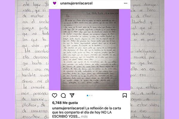 En las publicaciones se muestra una imagen que es una carta escrita por una reclusa anónima, junto con unas palabras de Yoseline “¿Hay algo peor que la cárcel?”.