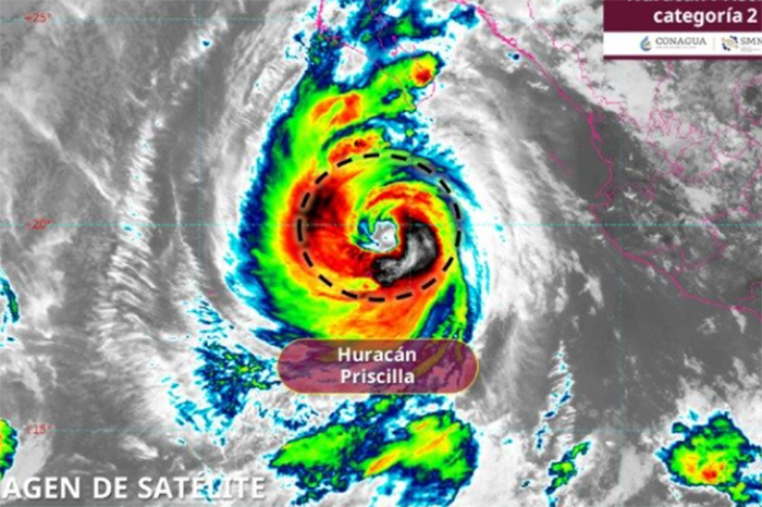 De acuerdo con el más reciente informe de la Comisión Nacional del Agua (Conagua), emitido a las 12:19 horas, Priscila continúa como huracán categoría 2, localizado a 340 kilómetros al sur-sureste de Cabo San Lucas, con vientos máximos sostenidos de 175 km/h, rachas de 215 km/h y desplazamiento hacia el oeste-noroeste a 17 km/h.