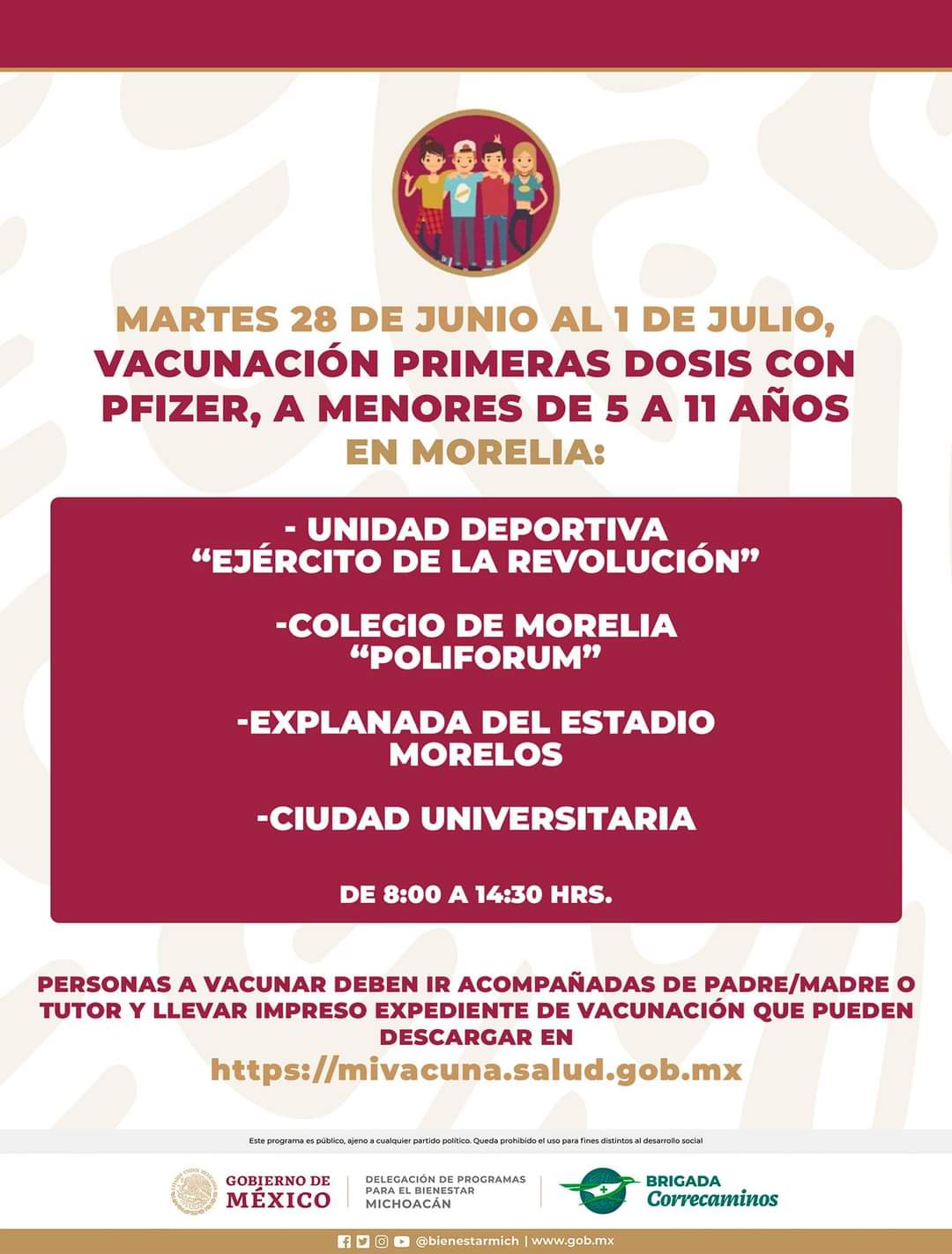 Morelia, Michoacán ., a 27 de junio del 2022.- El delegado en Michoacán de la Secretaría del Bienestar, Roberto Pantoja Arzola, anuncio que este martes 28 de junio comienza la vacunación contra Covid-19 para menores de 5 a 11 años en Morelia.