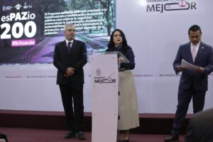 En conferencia de prensa encabezada por el gobernador Alfredo Ramírez Bedolla, la titular de la dependencia expuso que se trata del Programa esPAZio 200, impulsado por la Sedum, con el objetivo de revitalizar espacios públicos, creando entornos seguros, funcionales y accesibles para mejorar la calidad de vida de las familias michoacanas.