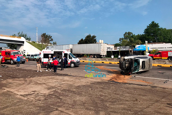 El accidente se registró en el kilómetro 8 de la vialidad a donde acudió personal de Protección Civil del estado para revisar a las personas que viajaban en la unidad y abanderar la zona.