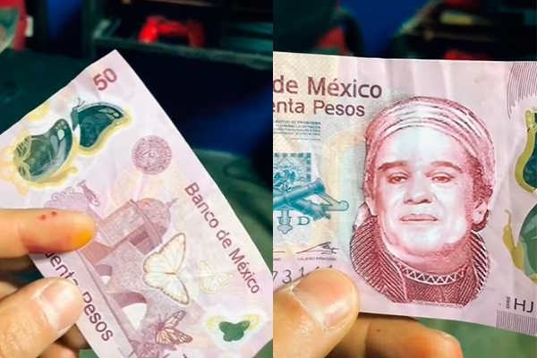 A 11 de mayo del 2022.- En Tik Tok circula un video el cual un usuario @eduaralanplum en México expone que le dieron un billete falso de $50 pesos, por supuesto que no se dio cuenta hasta que lo reviso horas más tarde.