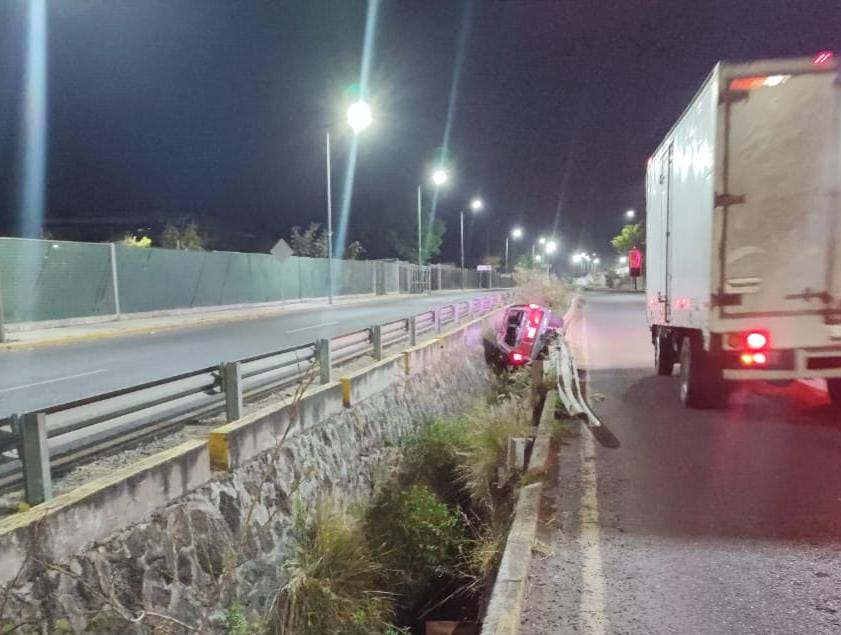 MORELIA MICH., 21 de febrero del 2023.- Esta madrugada una camioneta volcó y terminó dentro de un canal para aguas pluviales en una colonia del Norte de Morelia, no se reportaron lesionados.