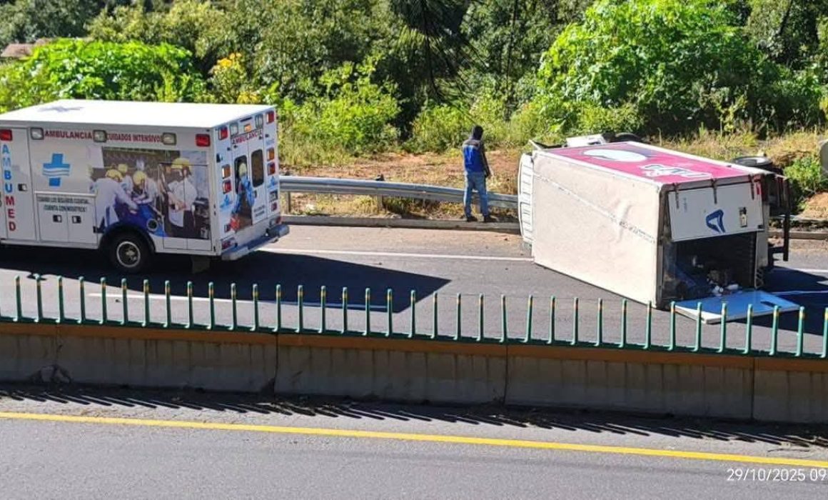 Afortunadamente, no se registraron personas lesionadas. Las autoridades ya realizan las maniobras correspondientes para retirar la unidad y restablecer la circulación, que se encuentra parcialmente interrumpida debido al percance.