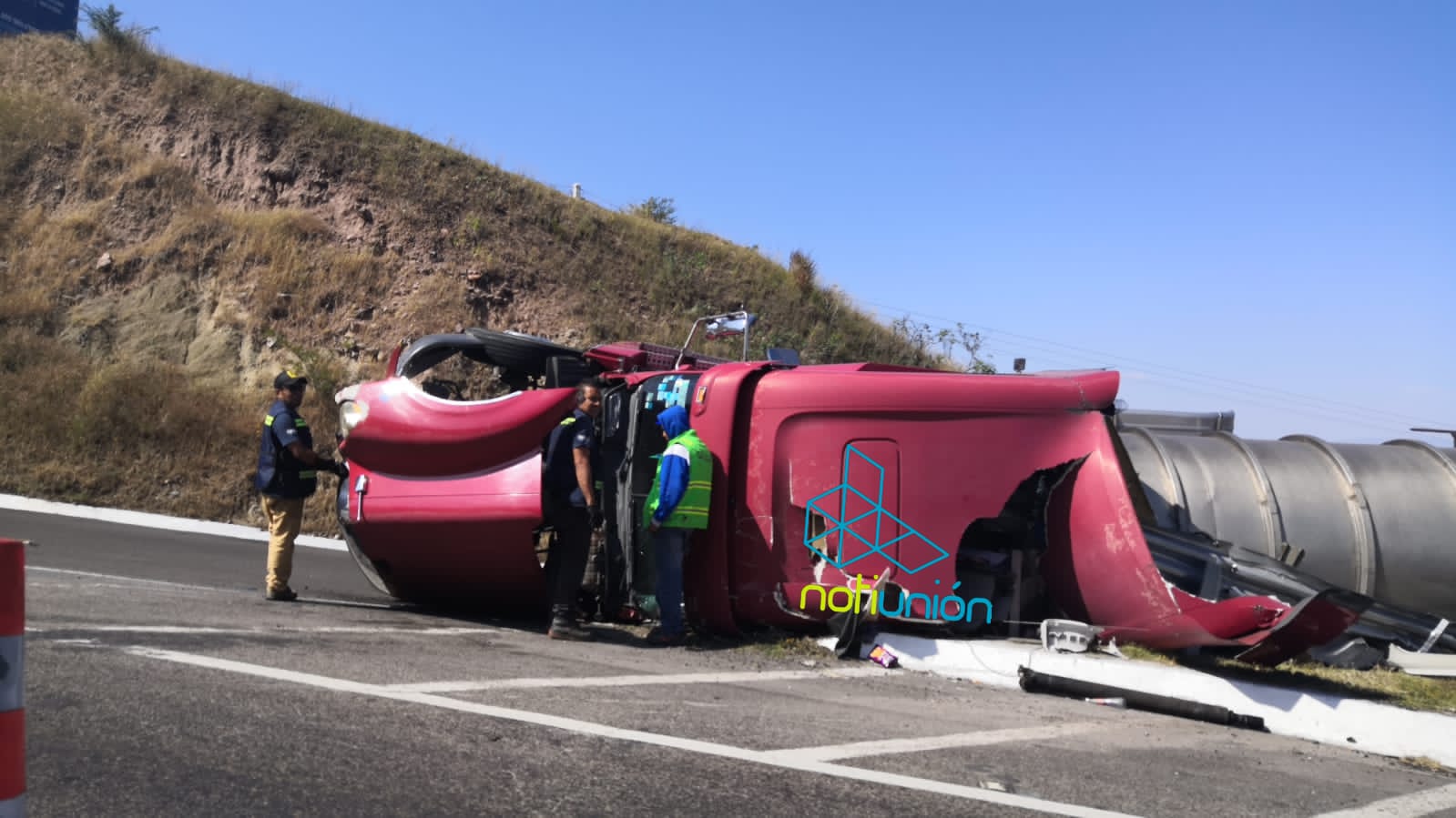 Esta mañana una pipa se volcó sobre la carretera Morelia-Salamanca en el cruce de la salida a la autopista Guadalajara – México .