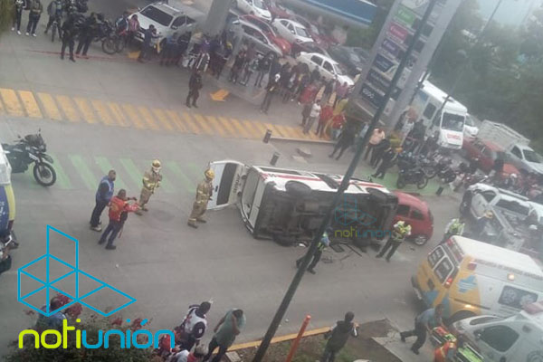 Morelia, Michoacán a 28 de junio del 2021.- La tarde de este lunes se registró un accidente vehicular entre un automóvil particular y una combi del transporte público en la colonia Tres Puentes en la ciudad de Morelia cerca de la gasolinera G-500 a pocos metros del río, hay varias personas lesionas.