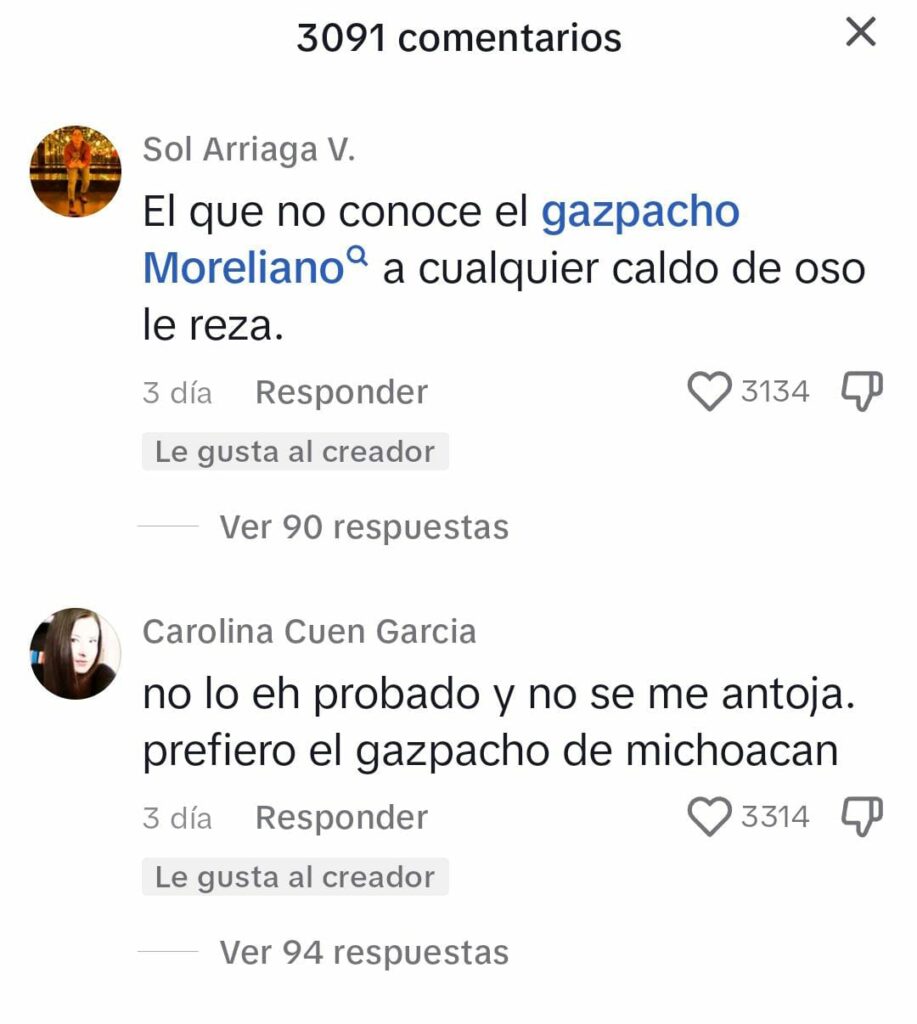 Varios internautas comenzaron a comentar y por supuesto que lo compararon con el gaspacho de Morelia, el que incluso se atrevieron a señalar que es una copia del mismo.