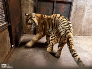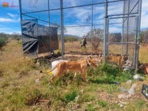 De acuerdo con los reportes, el tigre se encontraba confinado en una jaula sin techo, mientras que la leona permanecía amarrada del cuello a la misma estructura, rodeados de basura y sin las condiciones mínimas para su bienestar, situación que ponía en riesgo su vida.